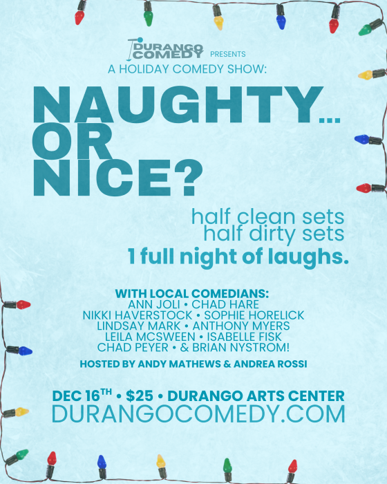 Naughty & Nice is a festive stand-up comedy face-off where clean and dirty comedians alternate sets, competing for Santa's (your) approval. Your hosts, Andy Mathews and Andrea Rossi, will keep the holiday spirit alive as they present five nice-as-sugar-plums comics and five mischief-making, coal-taking comics in this playful holiday showcase.