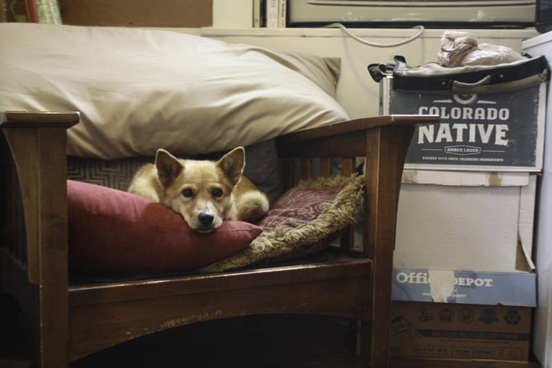 Small but mighty, Little is the tiniest dog in the shop, if not in all of Durango. At 2.5 pounds, this tiny lady spends her time snuggled up in a blanket on the counter, where she can keep an eye on everyone else. An absolute cuddle bug, you can’t help but fall in love with her bug eyes, tiny feet, giant ears, and full personality.