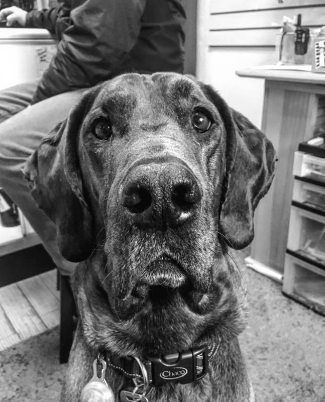 Tilli would prefer to be on the trail than in the shop, but she knows when there is work to be done and she’ll do everything in her power to make it a great time. Known as the “woo-woo” dog, Tilli’s howl is unmistakable. She loves to announce the entrance of new friends to the shop and it’s a job she takes seriously. Still, it’s obvious that Tilli is always daydreaming about playing in the river, running the local trails or lounging at the local crag.